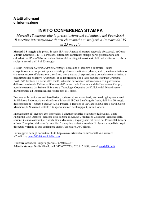 PEAM2004 - PESCARA ELECTRONIC ARTISTS MEETING, Italy, 2004
